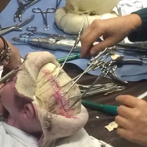 Os alunos treinaram abordagens em alguns tipos de cranioestenose discutindo as técnicas e suas peculiaridades.